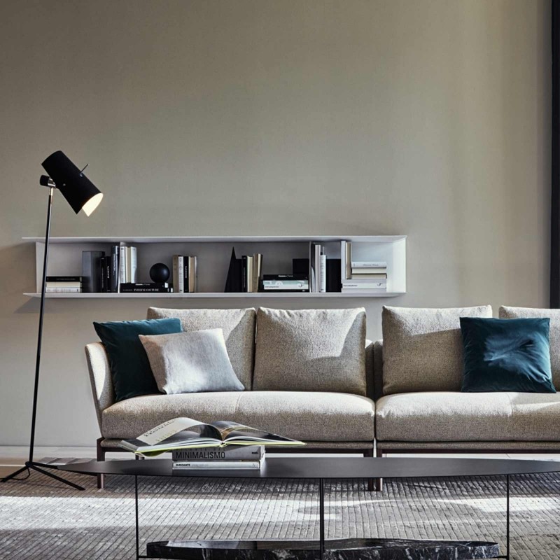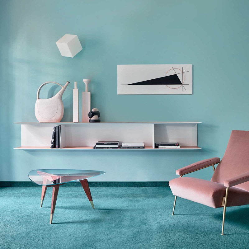 La bibliothèque suspendue D.355.1 est un projet révolutionnaire de Gio Ponti des années 1950 et plusieurs fois révisé par l'architecte milanais au fil des ans pour sa maison milanaise. Avec une finition orme, peinte à la main en blanc, la bibliothèque est disponible en deux longueurs : 240 ou 195 cm.