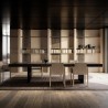 Blade Edge est la bibliothèque de Modulnova qui va au-delà de la simple fonctionnalité, se transformant en une expérience sensorielle faite de matière, de lumière et d'harmonie architecturale. Elle s'intègre dans l'espace avec une élégance discrète, devenant le point central du salon. Le dossier en travertin Titanium, finition Sense, se présente comme une surface authentique et vivante : la finition bouchardée met en valeur sa texture naturelle, évoquant le charme du temps et la valeur de l'artisanat. Une toile de fond matérielle qui dialogue avec la chaleur des montants en chêne Caramel massif. Les étagères en métal, fines et légères, dessinent une composition équilibrée de pleins et de vides, créant un rythme visuel raffiné entre rigueur géométrique et chaleur des matériaux. Pour compléter le projet, des fentes verticales de lumière : des détails lumineux qui traversent la structure, mettent en valeur les surfaces et guident le regard, amplifiant la profondeur et le charme.