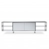 Andromeda est le buffet né de la collaboration entre UniFor et LSM et qui fait partie de la collection Molteni&C depuis 2025. Meuble qui allie pureté esthétique, savoir-faire artisanal et matériaux innovants, Andromeda s'inspire du théâtre Andromeda en Sicile. Ce qui rend Andromède, qui à première vue peut sembler être un simple buffet, résolument unique, c'est en fait la fusion de l'aluminium poli et du verre graphène, impeccablement travaillés et assemblés de manière à ce qu'aucun joint ne soit visible. Andromeda est conçu avec quatre compartiments dotés de portes centrales à charnières et d'une étagère latérale qui prolonge subtilement son impact fonctionnel et visuel. L'ensemble de la structure est ancré par un profilé d'acier cuspidé aux bords évasés qui confère à sa forme une légèreté éthérée. Un socle distinctif, placé le long des côtés intérieurs, crée l'illusion d'une présence suspendue, soutenue uniquement par les ailes latérales. Le plan en verre, disponible dans les finitions laquées extra-claires, noyer, travertin ou effet ciment, affine la composition, en harmonisant force et raffinement.