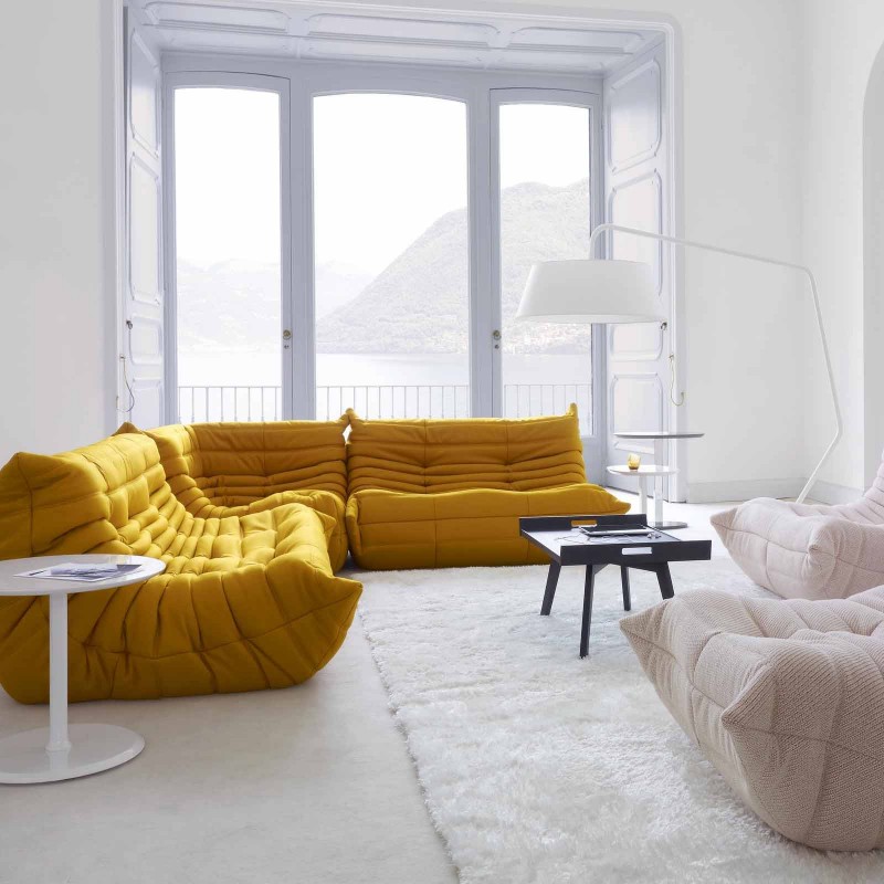 Togo est le canapé iconique créé en 1973 par Michel Ducaroy pour Ligne Roset. Emblème du non-conformisme typique des années 70, qui a également influencé le design de l'époque, le Togo a reçu le prix René-Gabriel lors de sa première présentation au Salon des Arts ménagers du Palais de la Défense à Paris, qui a reconnu un combinaison réussie d'innovation, de qualité et de prix démocratique. Le Togo se caractérise par la structure en mousse polyuréthane 5 densité qui garantit élasticité et confort. L'assise et la housse matelassée sont en ouate de polyester. Le canapé Togo se distingue par son aspect "froissé", obtenu en travaillant en pli et disponible en version tissu ou cuir.