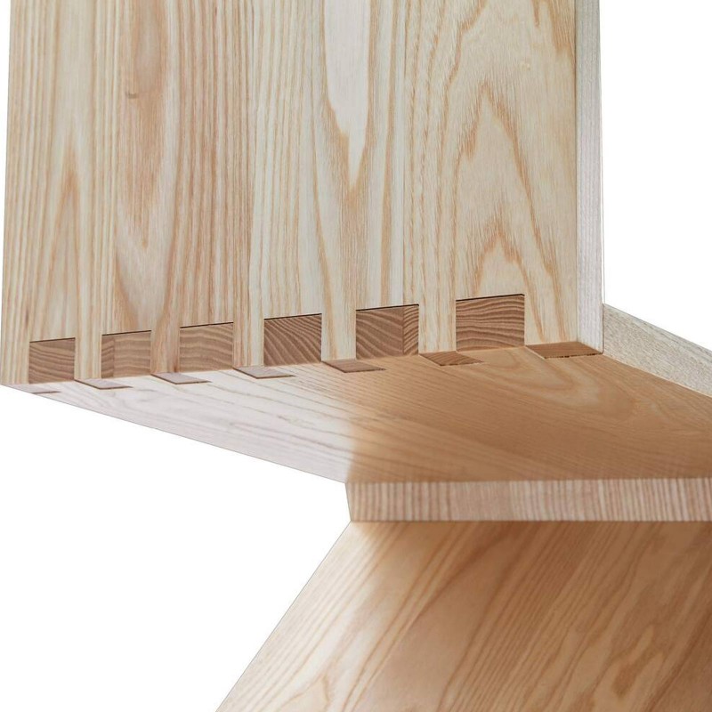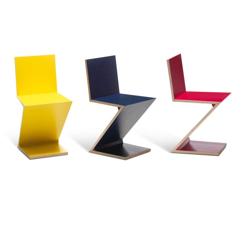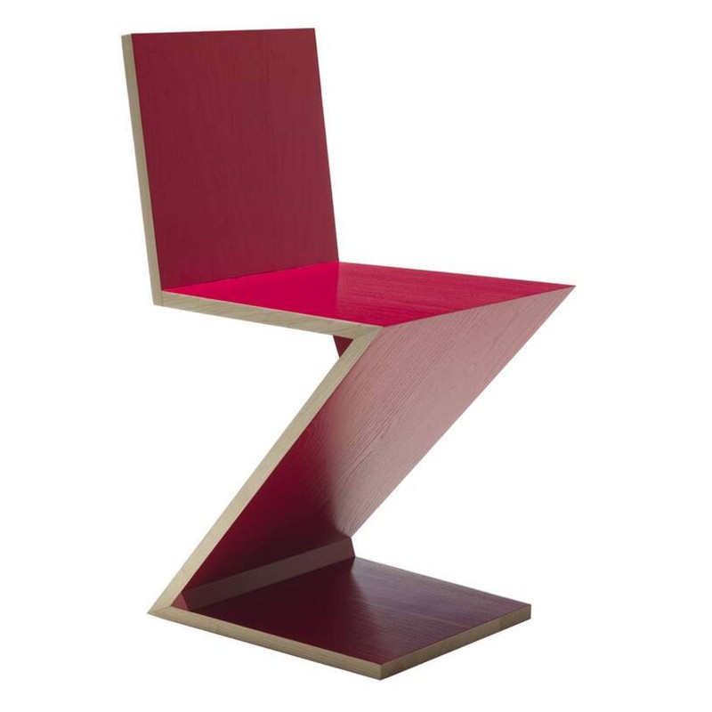 Zig Zag est la chaise Cassina au charme intemporel. Conçue par Gerrit Thomas Rietveld en 1934, Zig Zag est l'un des premiers exemples de chaise en bois massif en porte-à-faux, composée de quatre plans en séquence rythmique qui s'unissent dans une instabilité apparente sophistiquée. La succession des éléments typiques de la chaise : pieds, assise et dossier est remplacée par une feuille continue en bois en forme de Z inversé. Zig Zag est également appréciée pour l'excellente maîtrise dans la réalisation des assemblages à queue d'aronde. Dans les versions colorées, Zig Zag est mise en valeur par les veines du bois dans les plans et les sections latérales où la relation entre les lignes verticales, obliques et horizontales est plus évidente.
