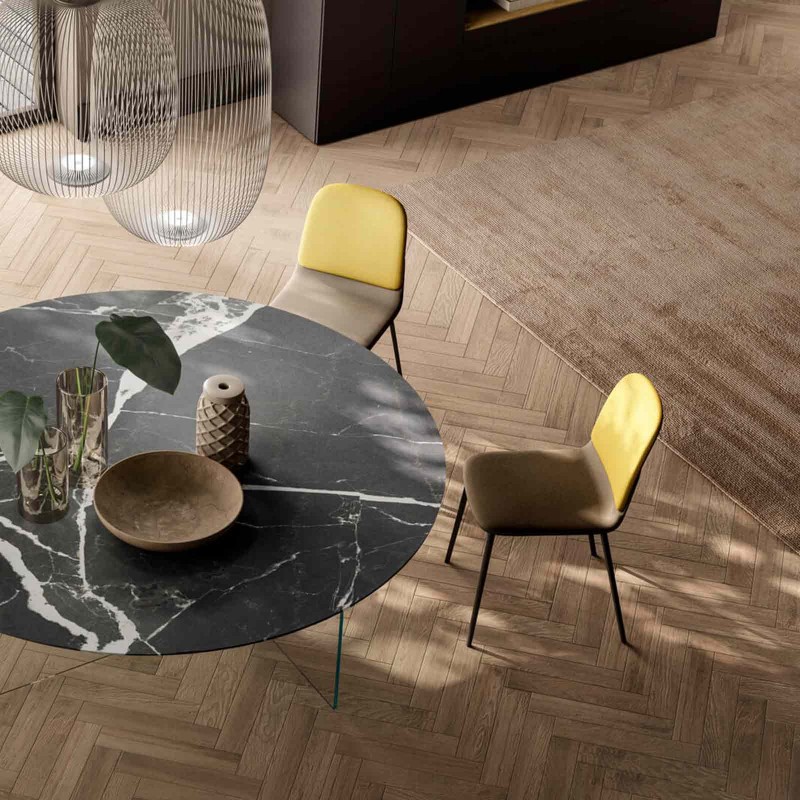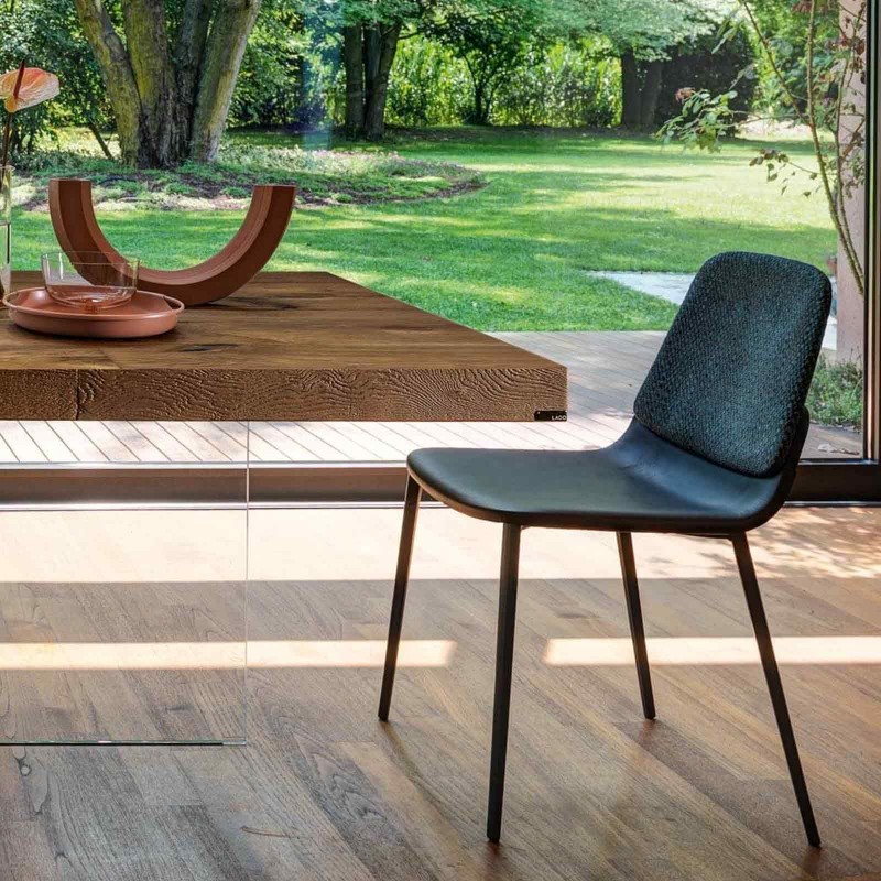 Mix and match et lignes sinueuses sont les mots qui décrivent le mieux la chaise Ermes de Lago Au nom de la liberté de composition, Ermes peut être personnalisé en combinant les tissus et les cuirs de l'assise et du dossier. A vous de choisir de jouer avec les contrastes de couleurs ou de garder le ton sur ton selon votre style! La structure métallique est légère et dans une couleur graphite sophistiquée; tandis que le siège et le dossier ergonomiques sont rembourrés pour un confort maximal.