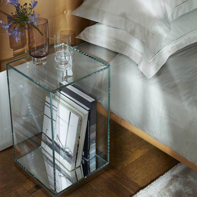Volage est le meuble de rangement de Cassina conçu par Philippe Starck. Une ode à la pureté des formes : Volage, qui est également une table de chevet, peut être associé au lit de la collection du même nom. Il s'agit d'un parallélépipède en verre extra-clair avec une base en acier chromé. L'ouverture se trouve à l'avant.
