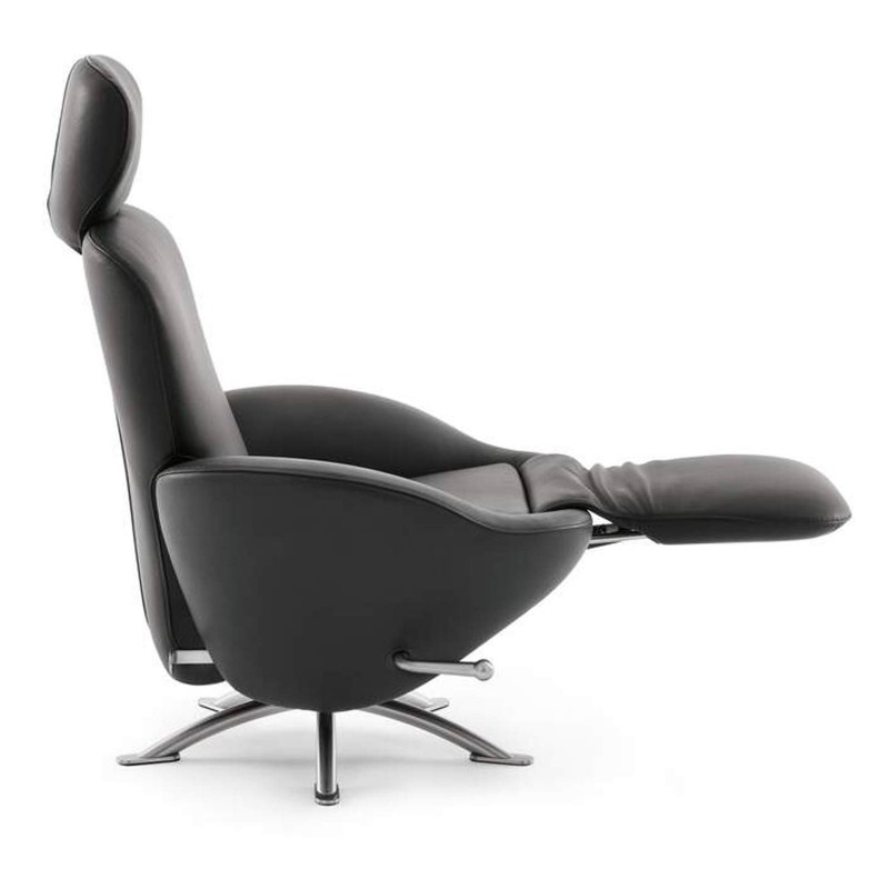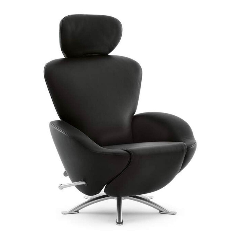 La fauteuil K10 Dodo de Cassina est un fauteuil pivotant à base fixe. Il se transforme en chaise longue pour garantir un maximum de praticité et de confort. Pour la même raison, le dossier et le repose-pieds sont mobiles. La transformabilité est assurée par un mécanisme comprenant une poignée latérale et un levier. Le revêtement, qui peut être en tissu ou en cuir, est fixe. Des revêtements amovibles sont également disponibles pour l'appuie-tête et le repose-pieds.