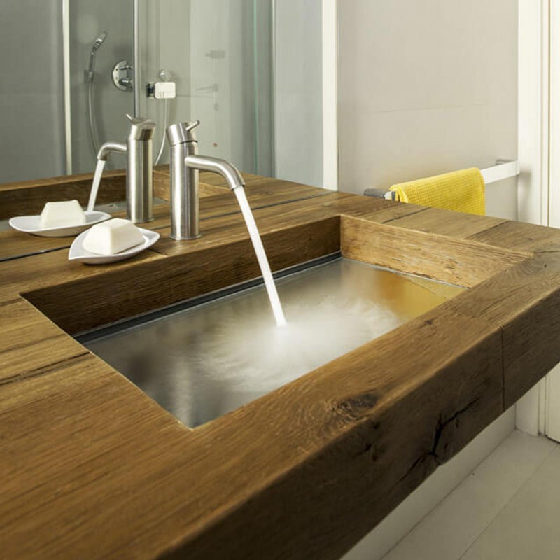 Le lavabo Depth de Lago est une solution de mobilier de salle de bain simple mais à fort impact. Une étagère de 8 cm d'épaisseur où se cache une fenêtre d'eau transparente, Depth, dessinée par Daniele Lago en 2013, joue avec la sensation de vide et de profondeur grâce au fond en verre transparent incliné. Le plateau en chêne Wildwood est traité thermiquement pour résister aux liquides. Également disponible en version Fenix ​​ou en stratifié, vous pouvez choisir la baignoire simple ou double.