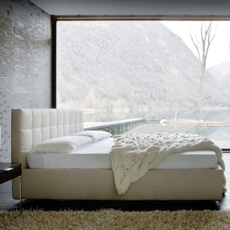 Le lit Zanotta Box est disponible avec ou sans compartiment de rangement. Structure en acier, suspension en lattes courbées de hêtre avec régleurs de rigidité. Tête de lit et piètement rembourrés en polyuréthane / fibre polyester thermocollée. La sellerie est matelassée disponible en différents tissus et cuirs de la gamme Zanotta, déhoussables.