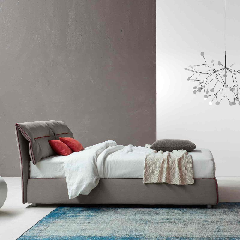 Campo est un lit aux lignes agréables et gracieuses, créé par le designer Mauro Lipparini pour Bonaldo. Il a une tête de lit rembourrée douce, ce qui le rend confortable et reposant. Les coutures colorées sur les bords donnent au meuble une touche de contemporanéité raffinée.