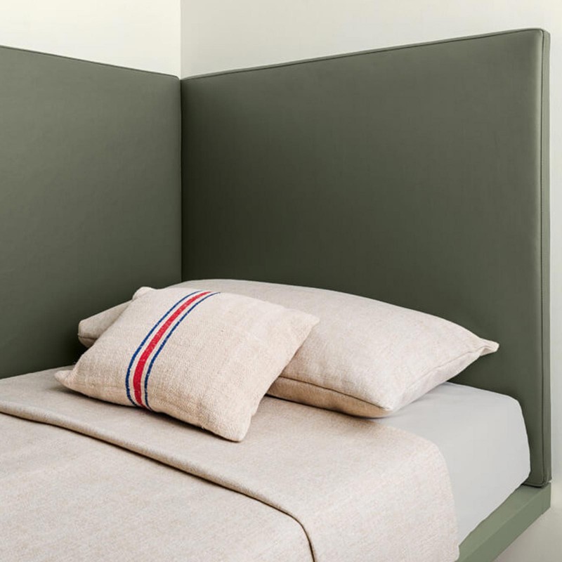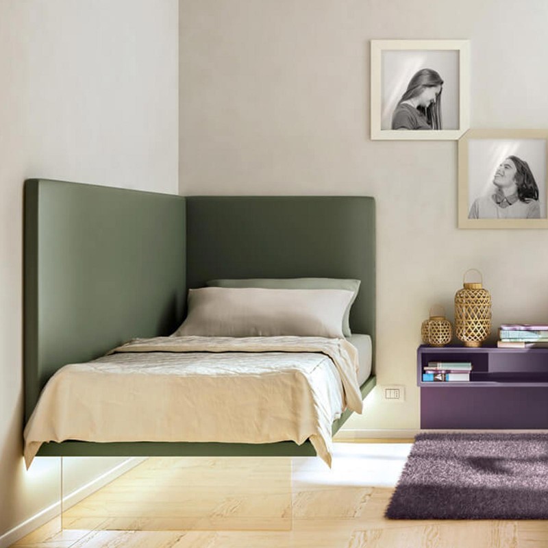 Le lit Gizmo de Lago est une solution peu encombrante idéale pour meubler le coin d'une chambre d'enfant ou d'une chambre individuelle avec une touche contemporaine. Idéal pour ceux qui n'ont pas la possibilité d'insérer le lit au centre de la pièce, Gizmo est disponible avec des panneaux de deux hauteurs: 73,6 ou 92 cm à revêtir en tissu ou en cuir. Vous pouvez choisir d'opter pour une jambe ou deux jambes Air. Il peut également être équipé d'un sommier coulissant ou de 2 paniers coulissants.