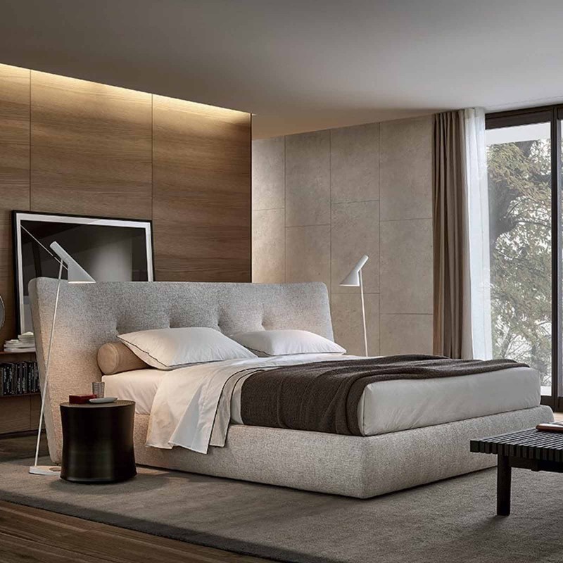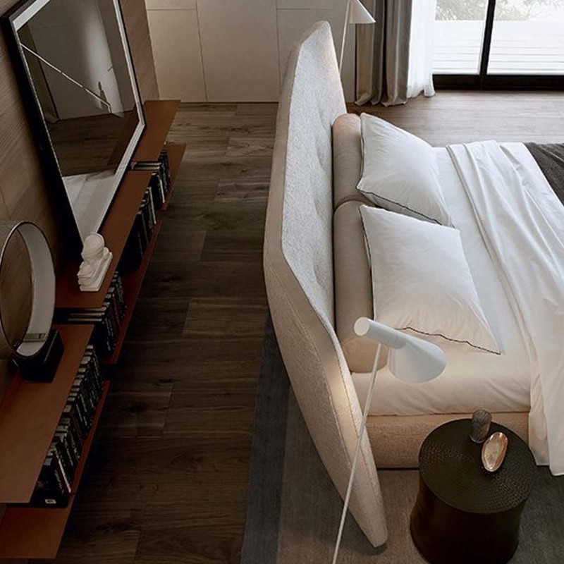 Rodolfo Dordoni signe le lit Rever pour Poliform, qui se distingue par les volumes généreux et enveloppants de la tête de lit. Rever s'inspire du monde de la couture, précisément de l'élégance d'un revers de veste pour homme. Rever est capable de caractériser la chambre avec une élégance discrète. Pour plus d'impact, Rever est parfait lorsqu'il est placé au centre de la pièce. Le lit est disponible avec un revêtement en tissu ou en cuir, avec une base fixe, anatomique ou pliante pour la base du conteneur.