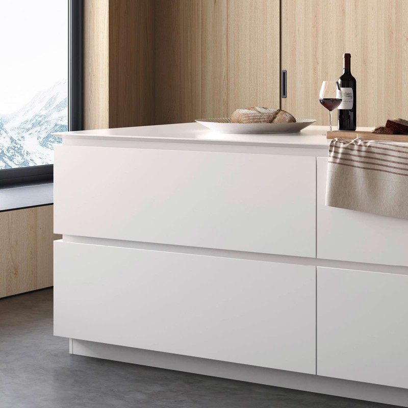 Un usinage au-dessus de l'avant et l'autre sur l'épaisseur du plan de travail créent un espace pour la prise.
