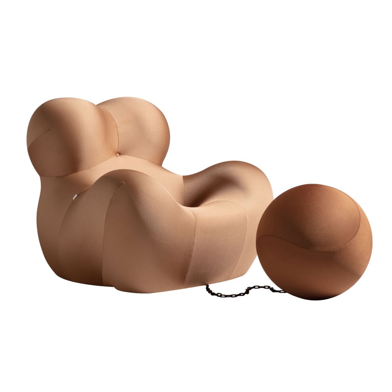 Le fauteuil UP5_6 de B&B Italia est une pièce culte dans le monde du design italien et international conçu en '69 par Gaetano Pesce. UP5_6 résume le savoir-faire dans le traitement du polyuréthane par injection et la conception originale. Le célèbre fauteuil fait en effet référence à des formes anthropomorphes: il s'agit en fait d'un grand utérus maternel qui évoque les statues préhistoriques des déesses de la fertilité. Le fauteuil est lié à une grande sphère qui remplit la fonction de pouf au moyen d'une chaîne qui symbolise le fait que la femme, malgré elle, est prisonnière d'elle-même.