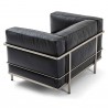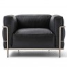 Fauteuil avec deux accoudoirs et une structure en acier chromé. Coussins indépendants avec rembourrage en mousse polyuréthane expansive et ouate de polyester ou en plume avec insert de mousse polyuréthane expansive. Revêtement en cuir LCX.