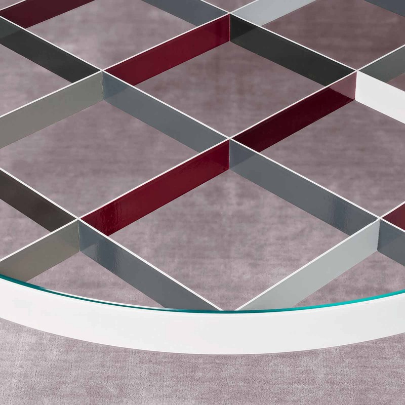 La table basse D.555.1 est un projet de Gio Ponti de 1956, réédité par Molteni & C pour célébrer le maître de la Collection Heritage en collaboration avec les Archives Gio Ponti. Conçu par l'architecte en 1954-1955 pour sa maison de via Dezza à Milan Structure et pieds en métal, avec grille colorée peinte à la main, le plateau est en verre transparent.
