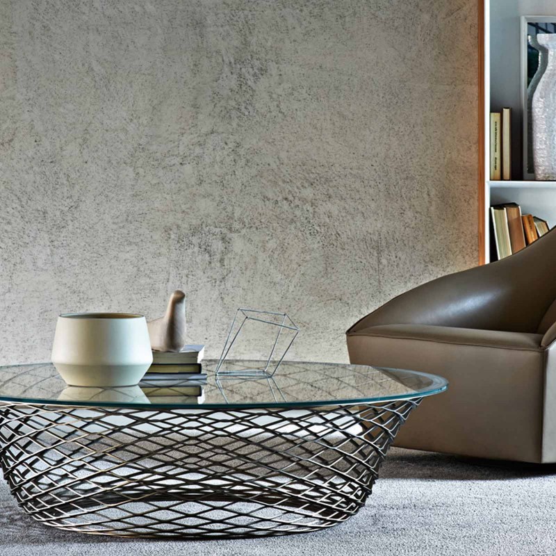 La table basse Teso de Molteni & C design par Foster + Partners est un tout nouveau projet de 2013. Un meuble sculpture où la légèreté du verre rencontre la solidité de l'acier. La structure est une plaque en acier inoxydable découpée au laser puis "étirée" pour prendre la forme tridimensionnelle, tandis que le plateau rond est en verre extra-clair. Plein et vide dans un objet qui complète le séjour avec charme.