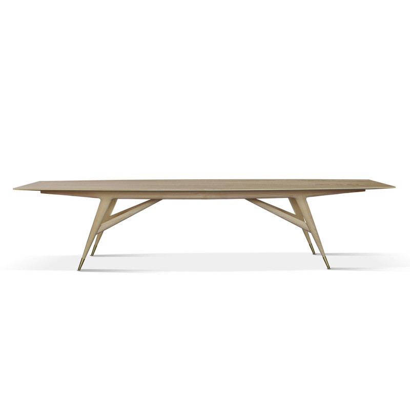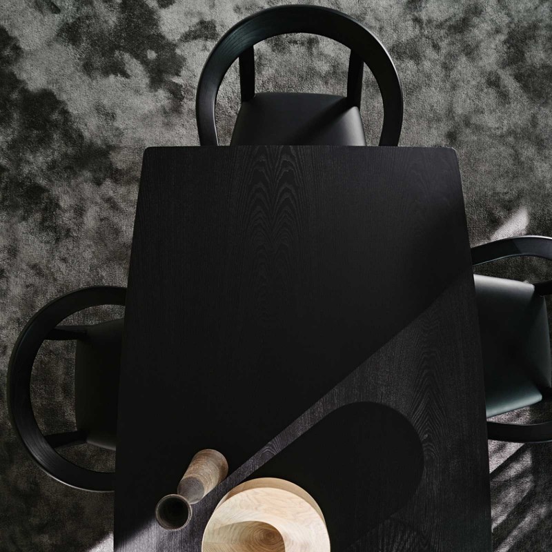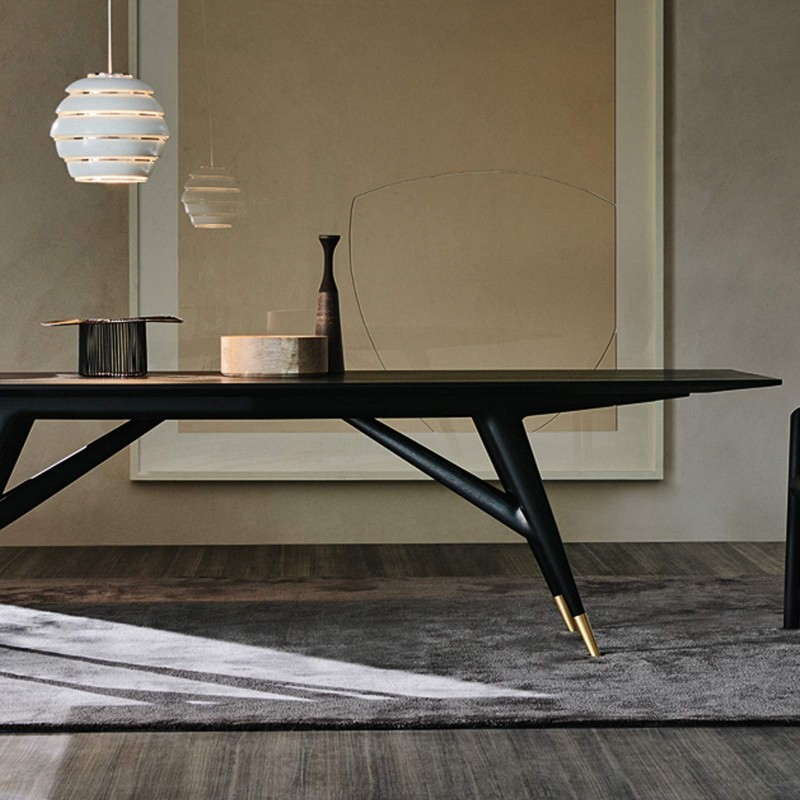 La table D.859.1 de Gio Ponti rééditée par Molteni & C pour célébrer le maître de la Collection Heritage en collaboration avec les Archives Gio Ponti. L'utilisation principale de cette table élancée est pour les salles de conférence, grâce à la possibilité d'accueillir dix personnes. A l'origine il était en frêne massif avec des pointes en laiton, aujourd'hui il est re-proposé à la fois dans la version originale et en frêne teinté noir. En plus des dimensions originales avec une longueur de 360 cm, D.859.1 est disponible en deux tailles plus petites qui respectent fidèlement les proportions du projet, préservant l'élégance éternelle de la main unique de Gio Ponti.