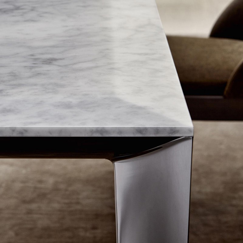 Filigree de Molteni&C conçu par Rodolfo Dordoni est une collection de tables fixes et extensibles, extraordinairement polyvalentes pour la personnalisation, qui se caractérise par un design linéaire et élégant, dans le plein style de la marque italienne. Les pieds sont en aluminium moulé sous pression et ont des étagères minces. Dans la version extensible, Filigree fournit un système technologique télescopique invisible, un plateau entier sans coupes, avec la double possibilité d'extension et une structure de confinement minimale du mécanisme et des extensions en seulement 38 mm d'épaisseur interne.