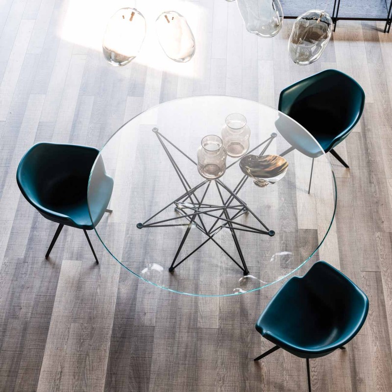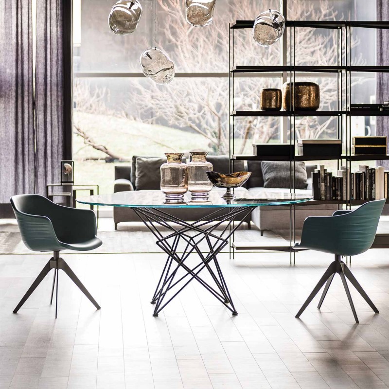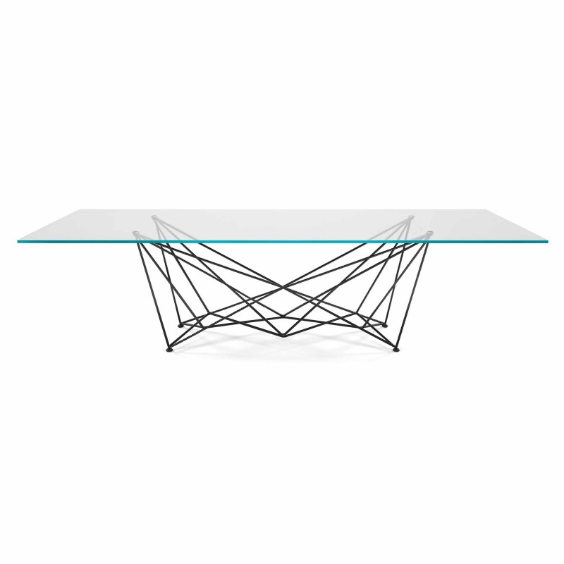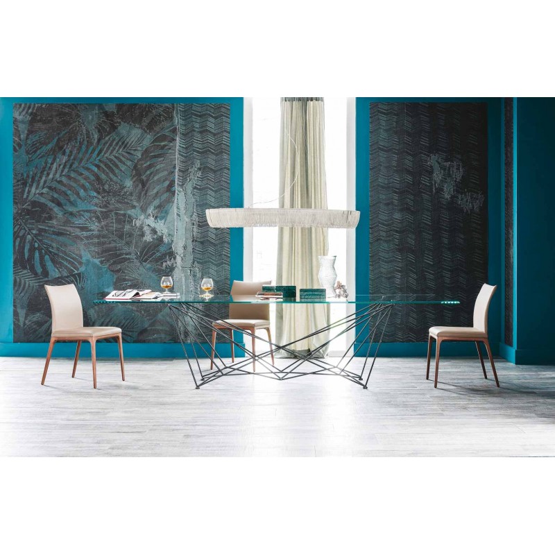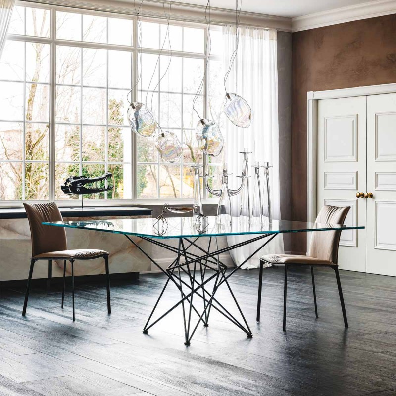 La table Gordon de Cattelan Italia a été magnifiquement conçue par Giorgio Cattelan. La table très élégante, a un design essentiel, construit avec matériaux légers pour les yeux. La base se compose par un entrelacement ordonné en acier laqué transparent, gaufré blanc, gaufré noir ou graphite. Le plateau est une fine couche en verre clair.