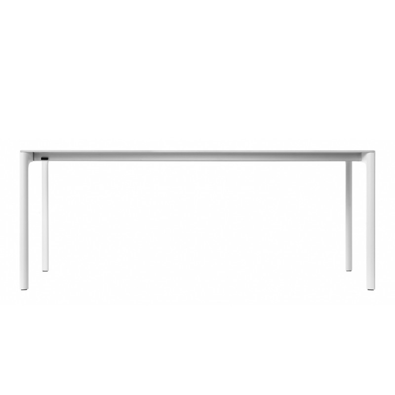 Maki est ici proposé en version extensible d'une profondeur de 80 cm et plateau en stratifié Alucompact® et stratifié Pure-White.