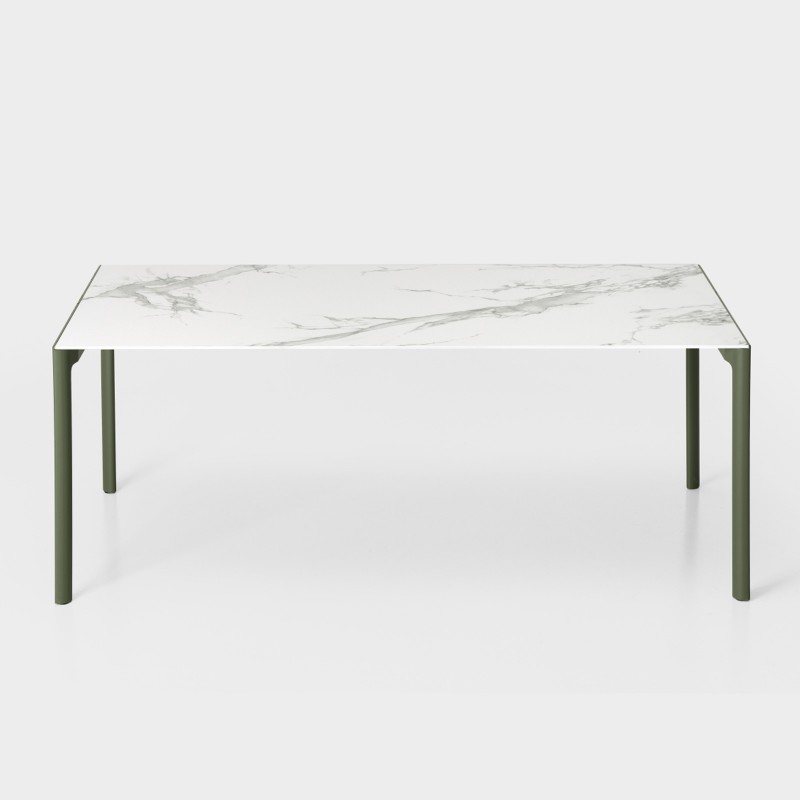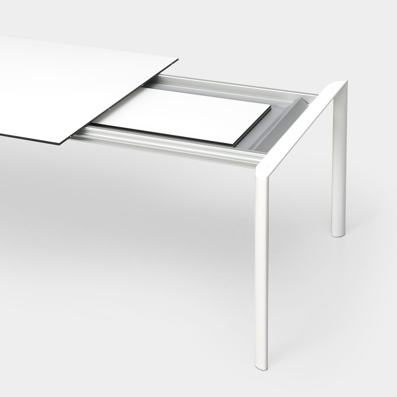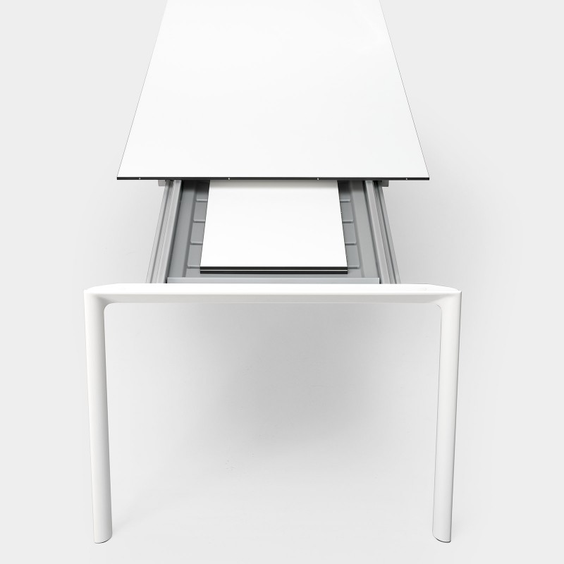 Maki est ici proposé en version extensible d'une profondeur de 90 cm et plateau en Dekton® by Cosentino.