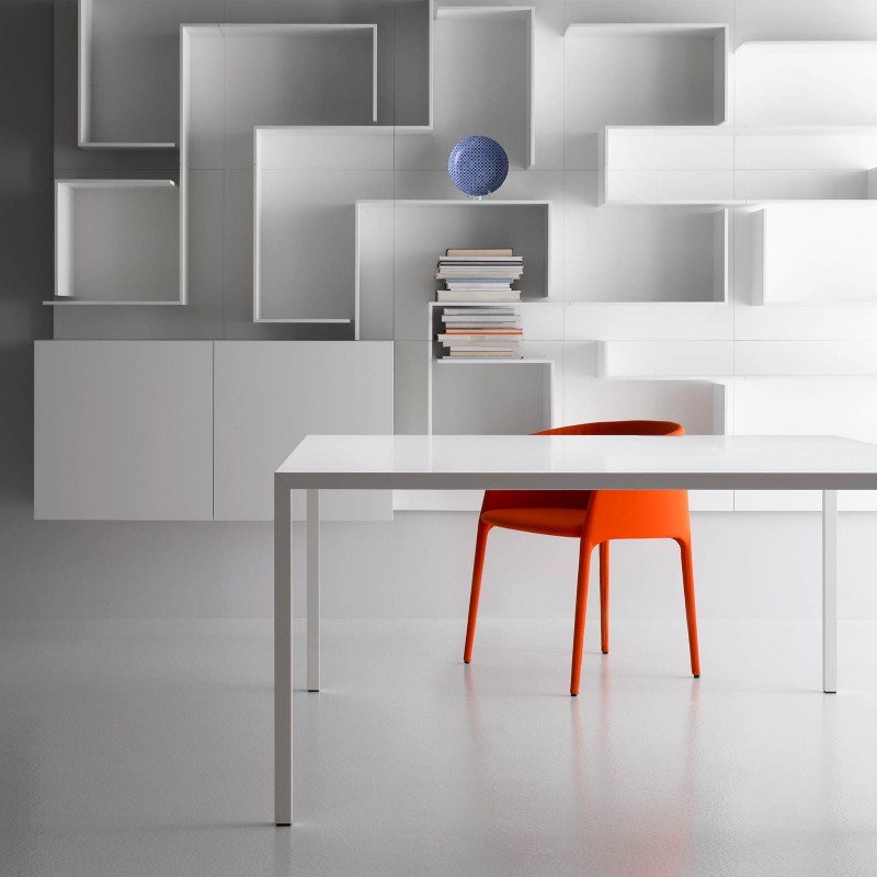 La table Tense de MDF Italia conçue par Piergiorgio Cazzaniga, Michele Cazzaniga est un éloge de l'essentialité et de la légèreté, avec une âme technologique, conservée dans le panneau du dessus qui vous permet d'atteindre de grandes tailles, jusqu'à 4 mètres. À l'occasion de la célébration du dixième anniversaire, en 2019 la table Tense s'est enrichie de nouvelles dimensions et de quatre nouvelles hauteurs (H 35, 45, 90 et 110 cm) qui s'adaptent à de nouveaux types de fonctions.