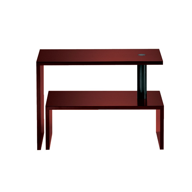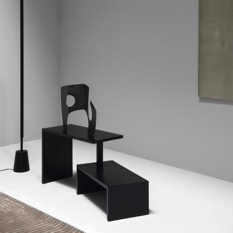 La table basse Basello par Zanotta design par Achille Castiglioni en 1987 se caractérise par une structure à deux éléments en MDF avec une peinture gaufrée anti-rayures en blanc, noir. Le joint est en acier peint de la même couleur que la table.