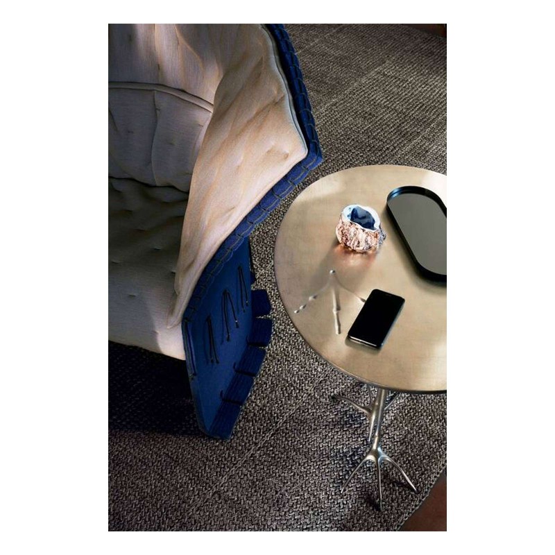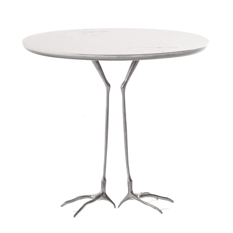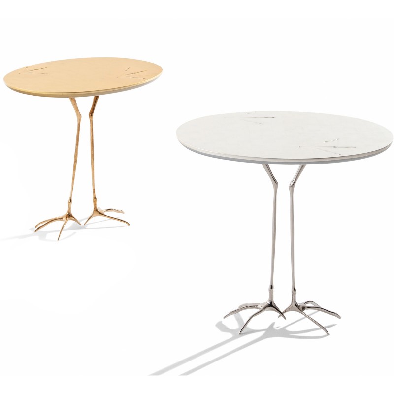 De l'union entre géométrie et fantaisie naît la table basse iconique Traccia, signée par l'artiste suisse Meret Oppenheim en 1939, connue sous le nom de « Bird Leg Table » en raison de son piètement particulier qui évoque justement des pattes d'oiseaux. Traccia est une table basse avec des pieds en bronze poli coulé et un plateau elliptique en multicouche recouvert de feuille d'or fin sur la surface supérieure. Traccia de Cassina est disponible en deux finitions: or jaune et or blanc.