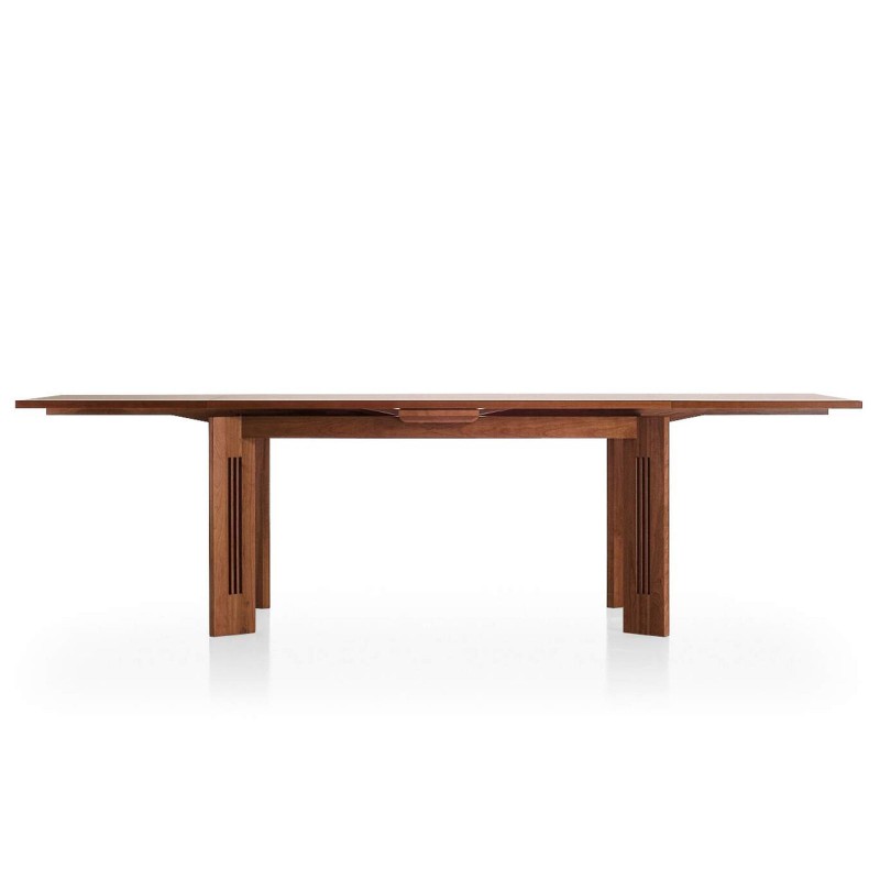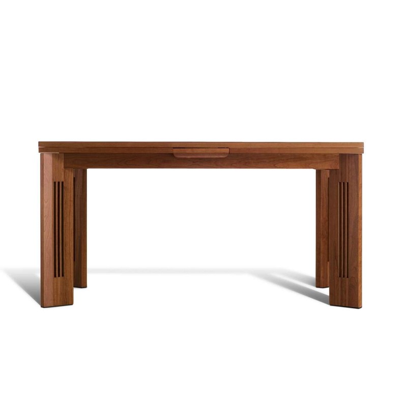 320 Berlino Table est une table à rallonges de Cassina conçue par le designer Charles Rennie Mackintosh en 1905. Berlino Table dispose d'un mécanisme d'ouverture, situé sous le plateau, qui s'actionne en tirant une tablette placée au centre du côté le plus long du plateau. En soulevant le plateau supérieur de la table Cassina, il est possible de retirer une ou les deux rallonges situées en dessous, adaptant ainsi la table Berlino à tous les besoins. La finition en cerisier naturel fait de la table Berlino de Cassina une table polyvalente qui peut être associée à tout type d'ameublement.