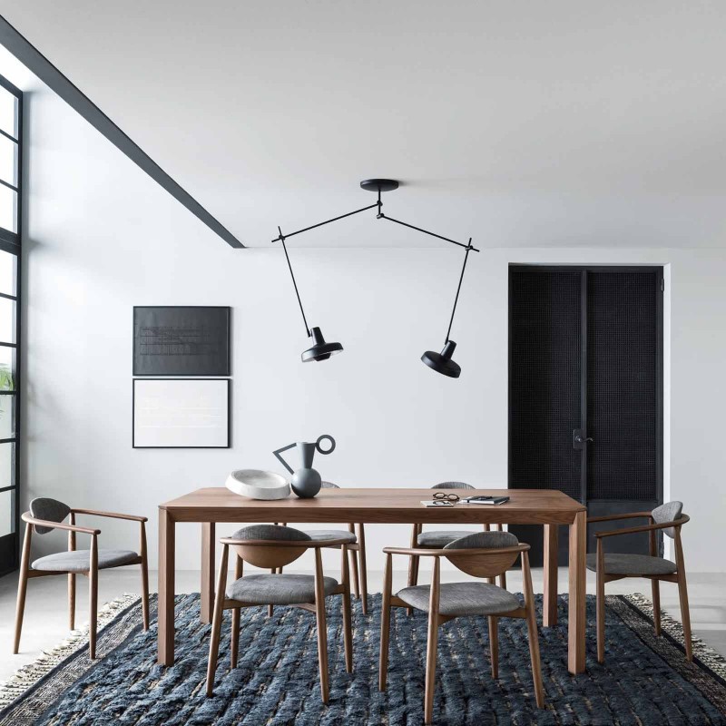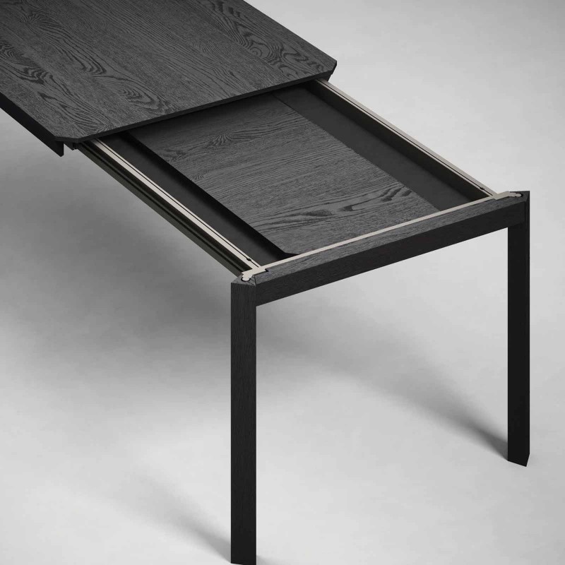 Stretch est la table extensible de Novamobili caractérisée par un détail esthétique original : les coins sont en effet conçus avec une coupe oblique, un élément qui n'est pas seulement esthétique mais aussi fonctionnel car il accueille également les pieds. Stretch est une table qui peut accueillir jusqu'à 12 personnes, avec une longueur de 200 cm à 300 cm, mais qui, si nécessaire, peut être rallongée à 250 cm grâce à une seule rallonge de 50 cm. Disponible en chêne anthracite et en placage de noyer Canaletto.