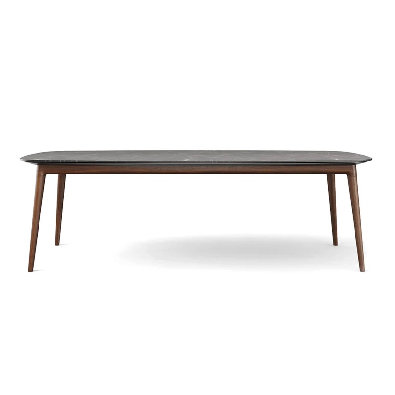 Hanami est la table de Novamobili qui se distingue par ses pieds inclinés qui s'affinent vers le sol. Une table fixe aux lignes rétro qui se distingue par sa légèreté et son design contemporain. Disponible en deux tailles, 200 et 250 cm, Hanami est proposée dans la version avec plateau plaqué chêne clair ou chêne charcoal et noyer canaletto avec des pieds dans la même finition.