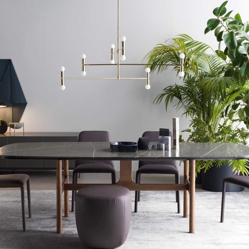 Torii de Novamobili est une table dont la particularité réside dans sa base, inspirée de l'Orient, puisqu'elle rappelle la forme de l'ancien portail d'entrée des temples japonais. Torii est ici disponible en 200 ou 250 cm de longueur avec un plateau en marbre ou en pierre de lave.
