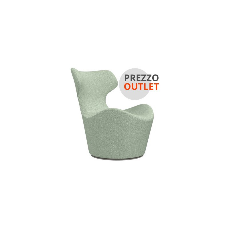 Le fauteuil Piccola Papilio par B&B Italia exposé dans notre boutique et disponible de suite est revêtu de tissu Elmes gris clair. La base est pivotante à 360°. La livraison est gratuite.