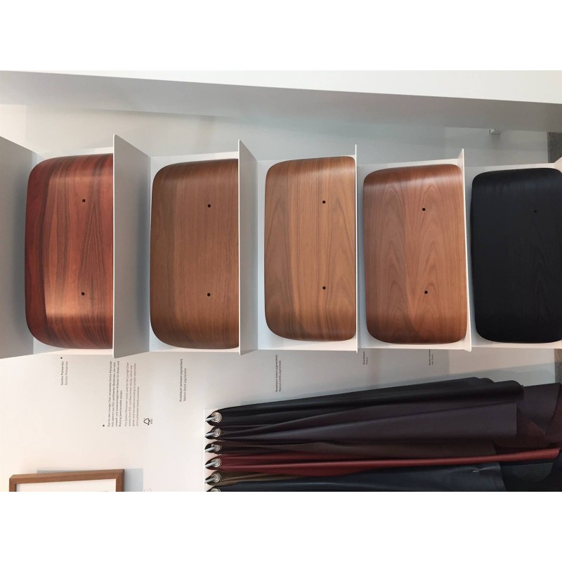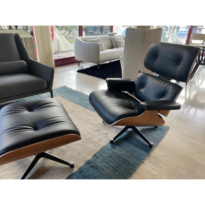 Lounge Chair & Ottoman originale Vitra versione classica in ciliegio americano e pelle nero 66 Premium, base lucida/fianchi neri, versione altezza 02 (nuove dimensioni, più ampie), pattini 05. Disponibile anche in altre finiture e versioni.