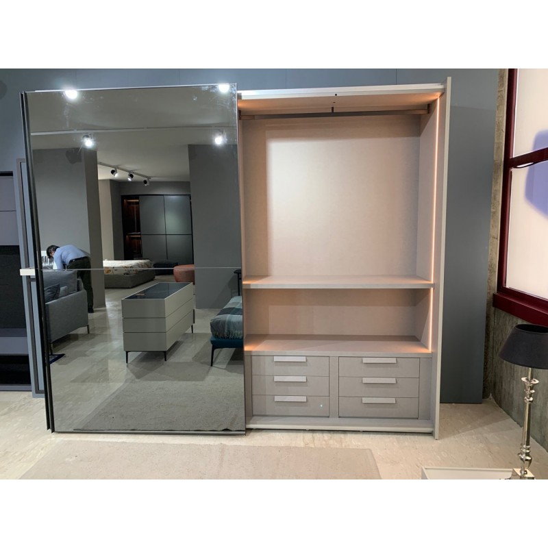 L'armadio Crystal di Novamobili è una soluzione di contenimento ampia e di grande profondità. In questa versione a prezzo outlet per rinnovo esposizione, Crystal è proposto nella seguente configurazione.