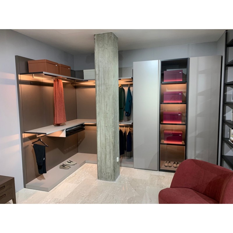 La cabina armadio Break di Novamobili è una soluzione di contenimento capiente e funzionale con moduli angolari e accessori interni.