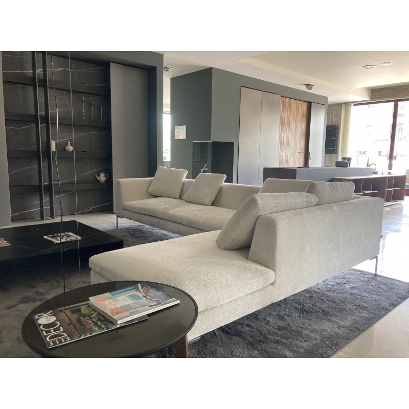 Le canapé Charles de B&B Italia est un projet emblématique signé Antonio Citterio, caractérisé par un design moderne et léger, avec des pieds essentiels en aluminium en forme de « L ». Dans cette configuration à prix outlet, Charles de B&B Italia se compose de :