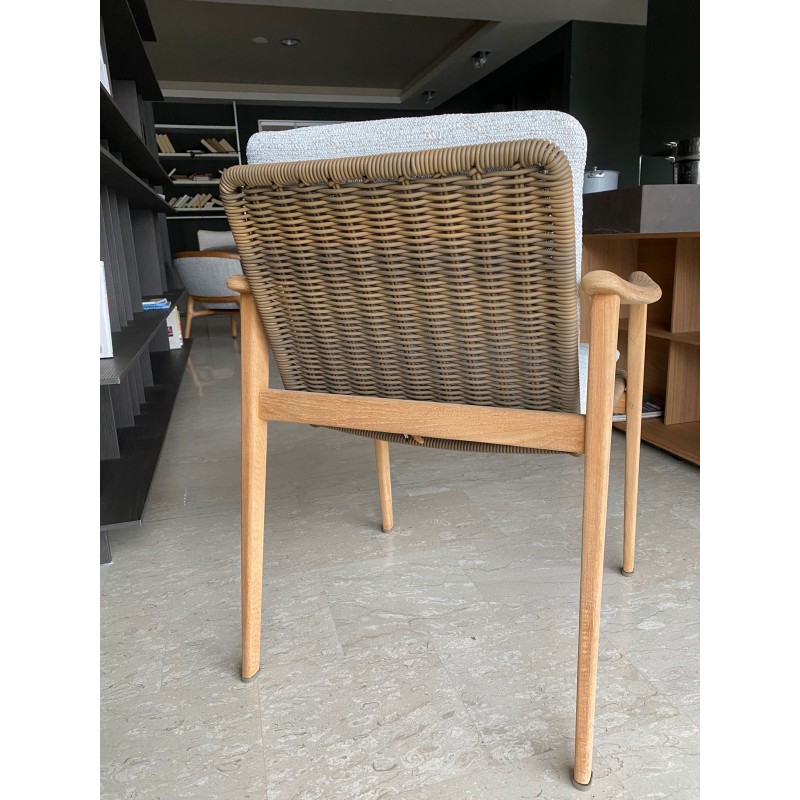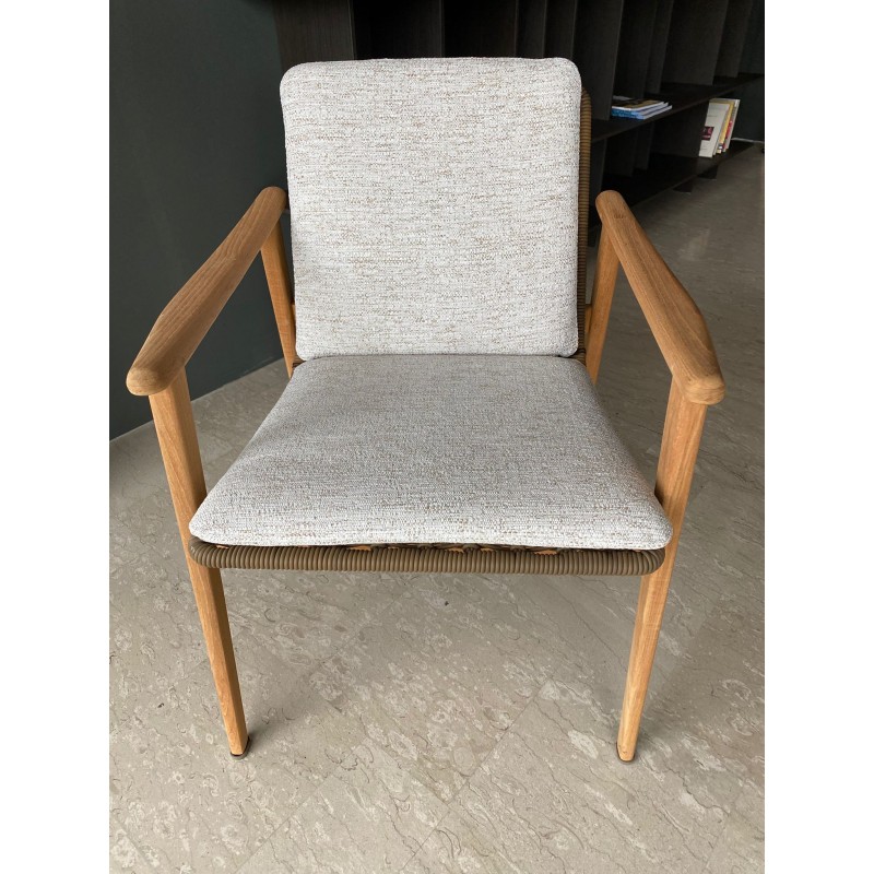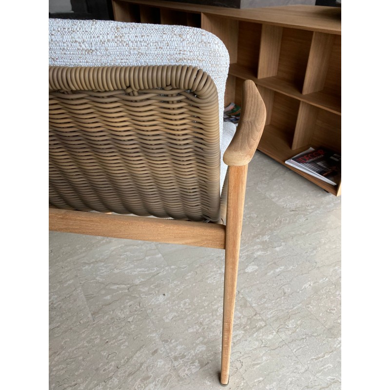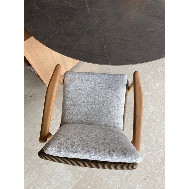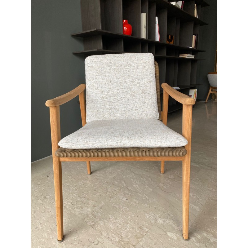 Le fauteuil de salle à manger d'extérieur Fynn de Minotti, conçu par GamFratesi, dans cette version à prix outlet en raison du renouvellement de l'expo, est proposé dans la configuration suivante :