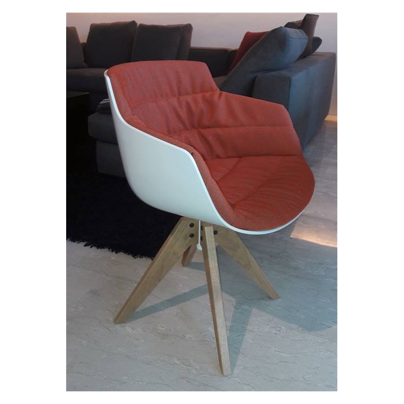 Sedia Flow Slim Imbottita e girevole di MDF Italia con basamento costituito da 4 gambe rovere VN, scocca bianca e rivestimento in tessuto Parigi 011 (F). Dimensioni: 56x56x76,4h. Altezza seduta: 44 cm.