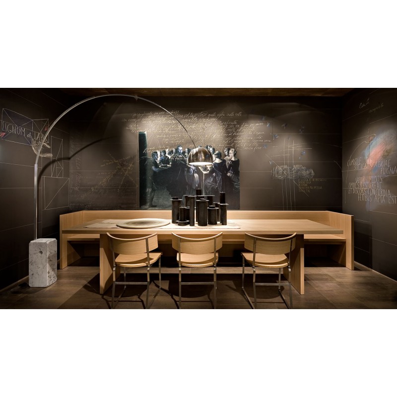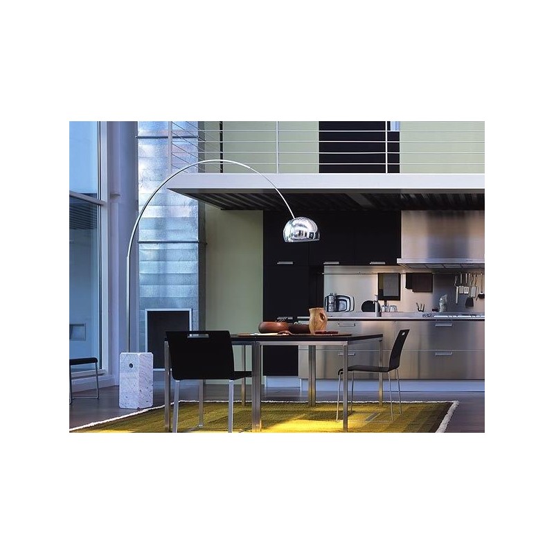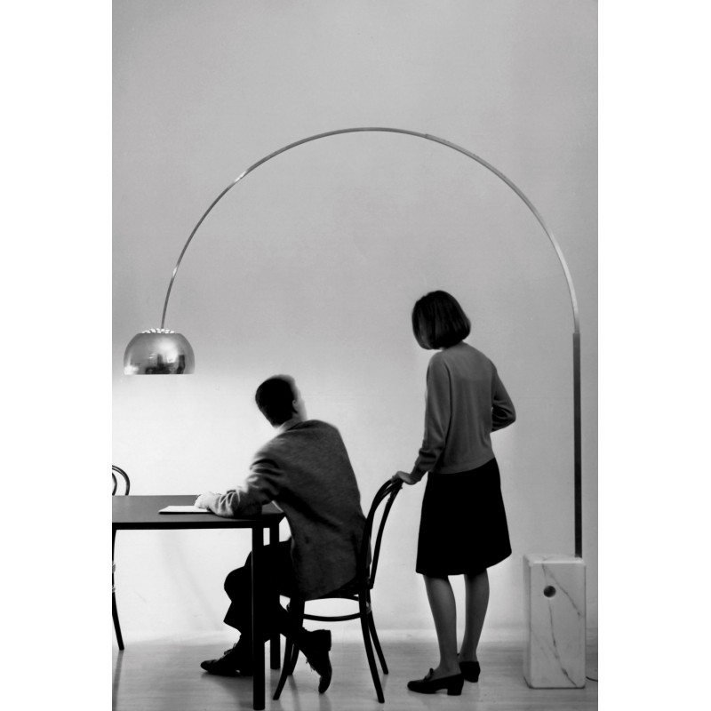 La lampada Arco di Flos disegnata nel 1962 da Achille & Pier Giacomo Castiglioni. Prima lampada ad arco nella storia del design, Arco di Flos è un'icona senza tempo e rientra nella collezione permanente della Triennale di Milano e del MoMa di New York.