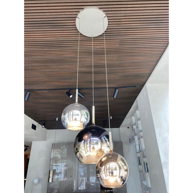 Dans cette composition à prix outlet pour renouvellement expo, Glo est proposée dans la version suspension avec 3 lampes :