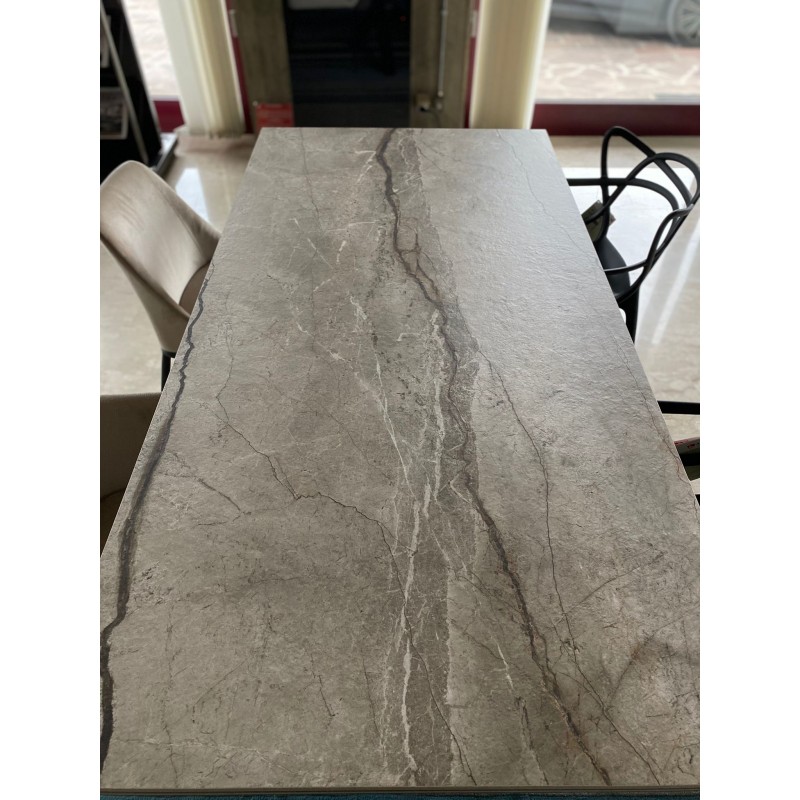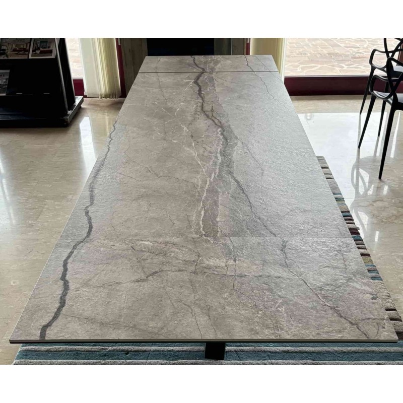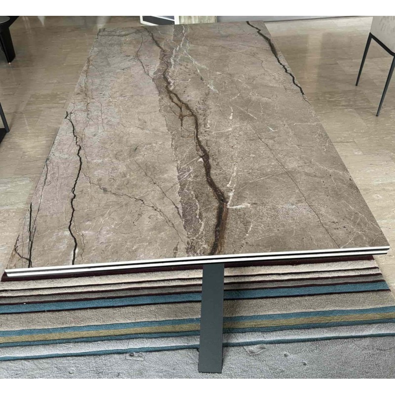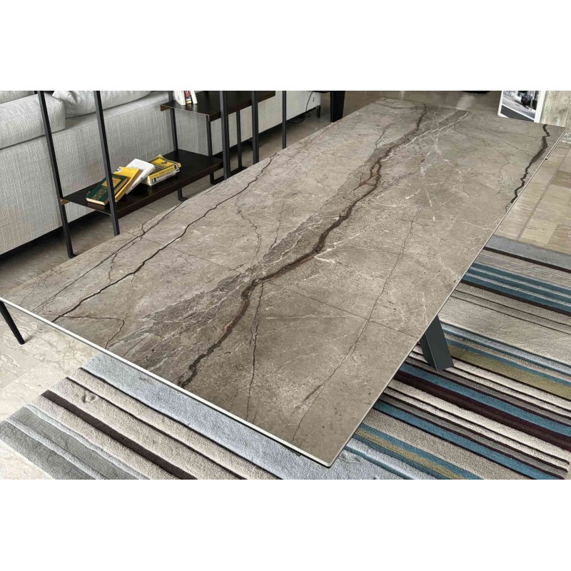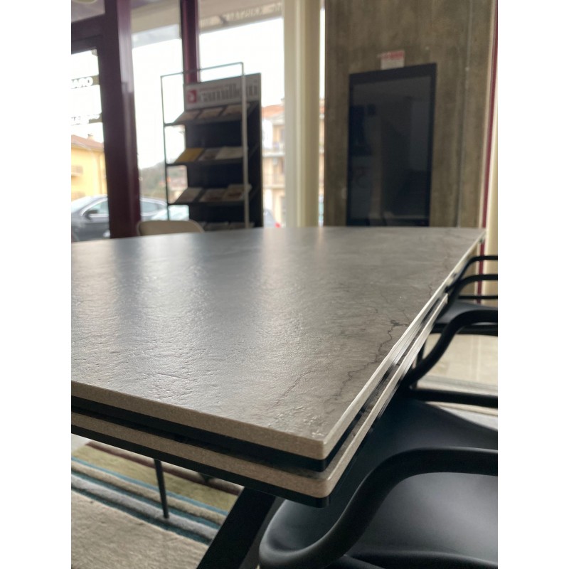Plateau et allonges en céramique mate brevetée 3d Silver Root de Marazzi (texture continue entre le plateau fixe et l'allonges)