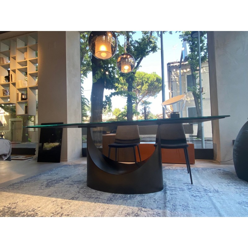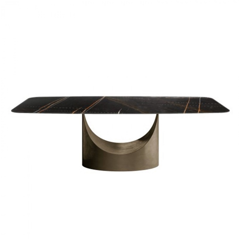 Il tavolo U di Lago è un complemento di grande impatto estetico, dal basamento scultoreo in metallo e dalla leggerezza del piano in vetro XGlass Marble, una tecnologia innovativa che permette di trasferire immagini su vetro, reinterpretando i diversi materiali, dal marmo al legno fino ai metalli e ai tessuti.