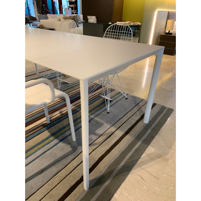 Maki est la table conçue par Kristalia avec un design minimal mais des profils de pieds arrondis.