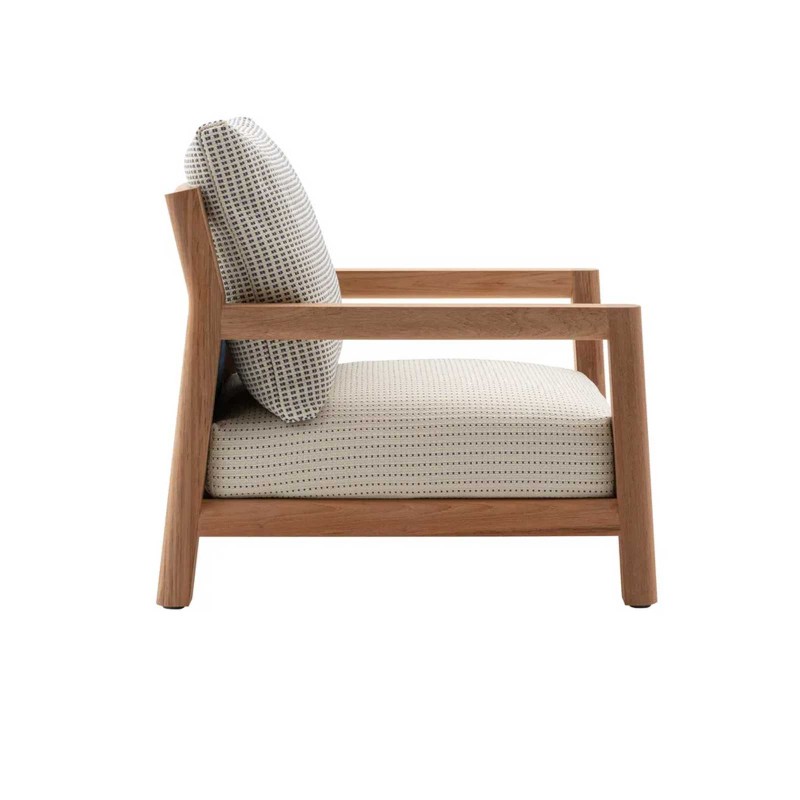 Pablo est la première collection outdoor de Vincent Van Duysen pour B&B Italia. Un projet aux géométries proportionnées, décliné en fauteuil en deux profondeurs, canapé, repose-pieds et table basse. Attaché au minimalisme et à la noblesse des matériaux, Pablo se caractérise par la structure en teck, reconnue pour ses performances techniques et sa résistance aux intempéries. Pablo est un équilibre parfait entre recherche stylistique et fonctionnalité: la structure ne présente aucune interruption, favorisant le maintien du bois, ainsi que les panneaux arrière en tissu, qui sont facilement démontables pour un entretien plus facile. Des astuces qui font de Pablo une collection apparemment simple, mais pleine de détails à apprécier.