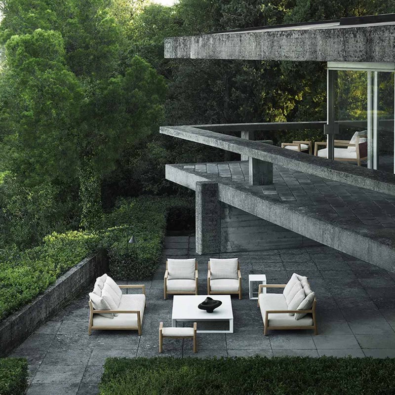 Pablo est la première collection outdoor de Vincent Van Duysen pour B&B Italia. Un projet aux géométries proportionnées, décliné en fauteuil en deux profondeurs, canapé, repose-pieds et table basse. Les tables basses sont disponibles en deux tailles et deux finitions en béton. Solides sculpturaux pour enrichir l'espace de vie extérieur par B&B Italia.