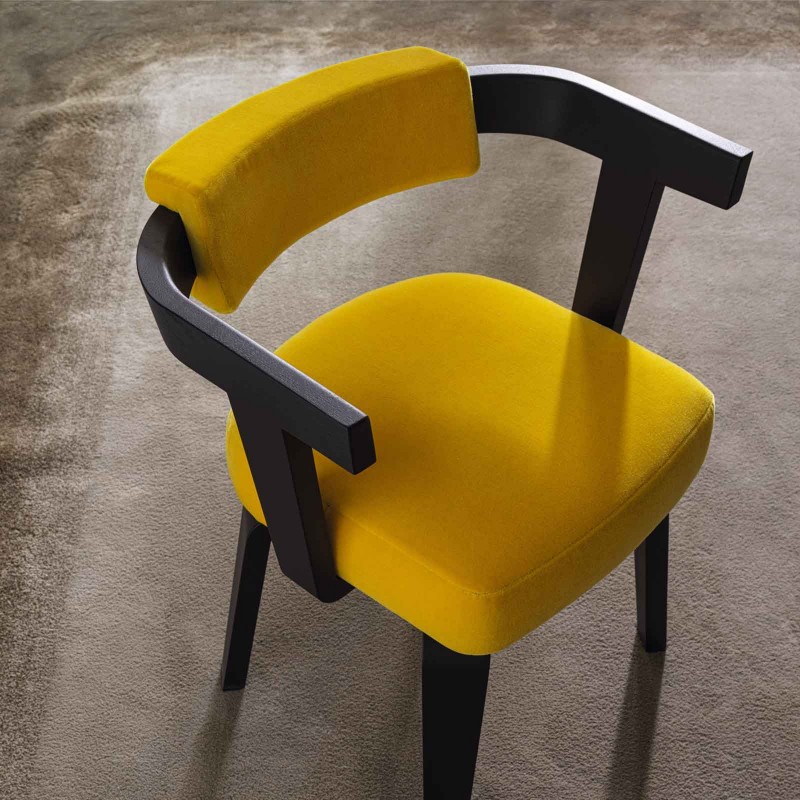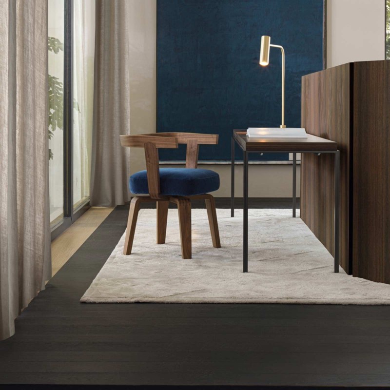 Porta Volta est un siège personnalisable en termes de typologie : les versions chaise de salle à manger (h 71 cm) et chaise basse (h 66 cm) sont disponibles, adaptées à l'espace de vie et aux finitions : la structure en bois massif peut être en noyer Canaletto, chêne noir, chêne Sunrise, chêne graphite ou eucalyptus. Le revêtement est disponible dans la gamme de tissus et de cuirs Molteni&C, ainsi qu'une sélection spéciale de velours mohair. Le coussin peut être personnalisé en choisissant parmi quatre couleurs : jaune tournesol, bleu roi, rose marguerite ou gris argent.