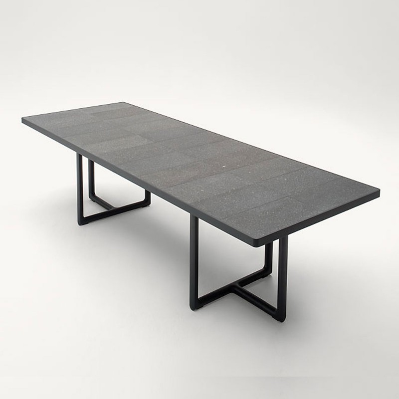 Portofino par Paola Lenti est une table à manger aux lignes géométriques signée Vincent Van Duysen. Le plateau est en pierre disponible en lave naturelle ou en Pietra di Comiso, tandis que la structure est disponible en iroko ou robinier massif. Portofino est une table d'extérieur et de jardin de différentes tailles.