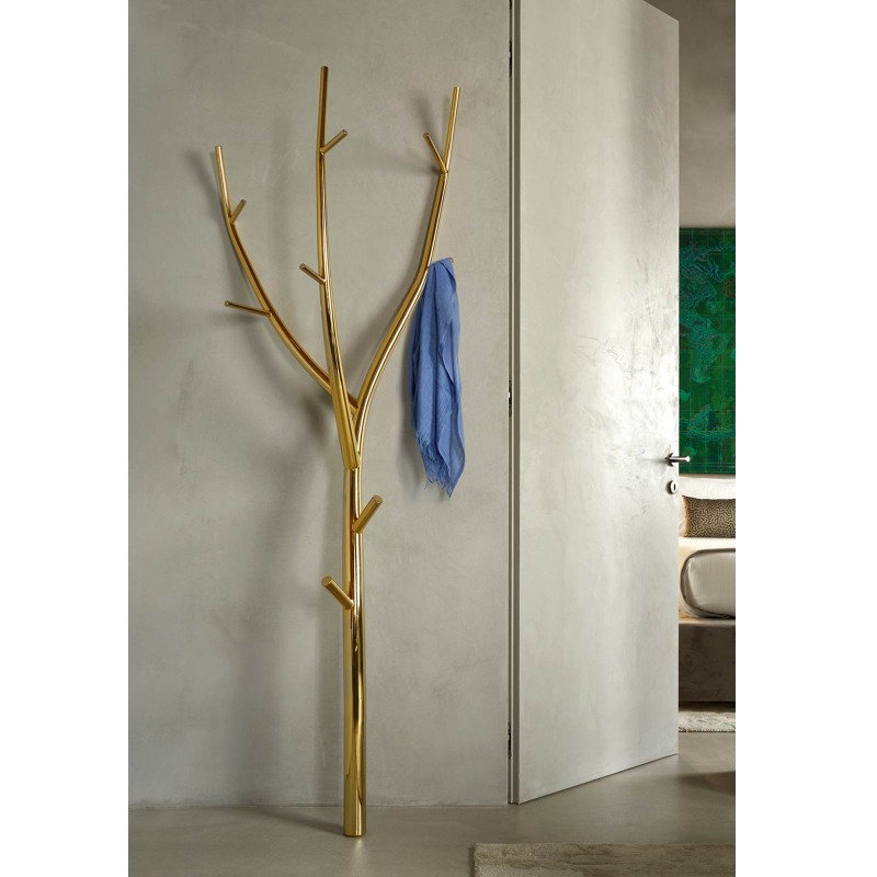 Ramo est le porte manteaux in acier d'Opinion Ciatti qui ressemble à une branche, peut-être le premier objet dans la nature qui a rempli la fonction de suspendre des choses. Ramo est fixé au mur au moyen de deux crochets recouverts par deux des trois branches dont il est composé, c'est pourquoi il n'y a pas de base. La branche a 11 brindilles qui agissent comme des crochets. Disponible en finition blanche, effet corten ou en galvanique doré.