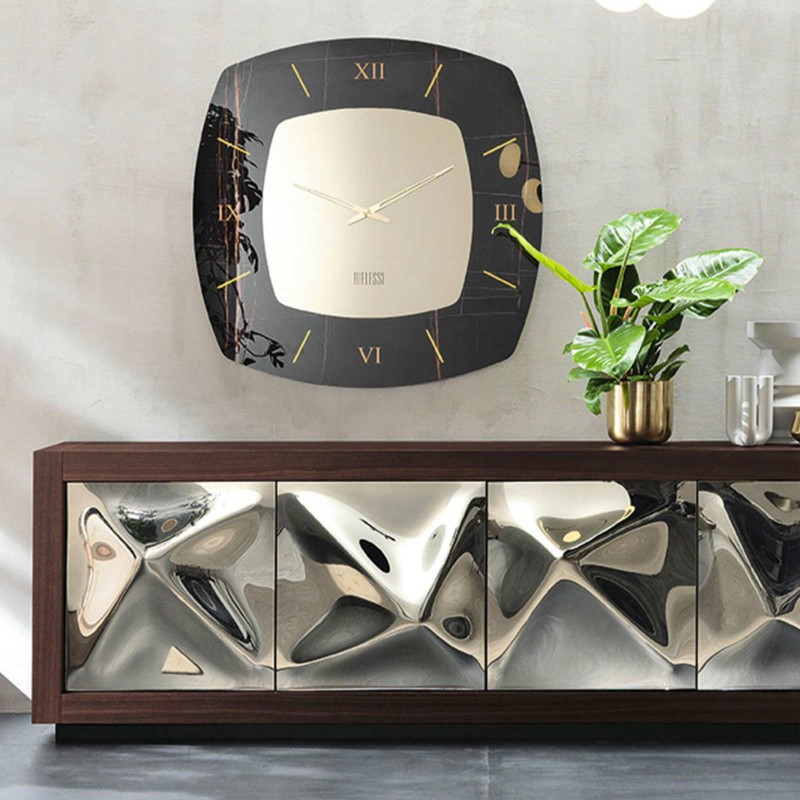 L'horloge Sanremo de Riflessi est un accessoire capable de donner une élégance contemporaine au mur grâce à la combinaison parfaite de lignes classiques et à l'utilisation de matériaux précieux. Disponible en forme carrée (100 x 100 cm) ou rectangulaire (165 x 90 cm), Sanremo est proposé en verre miroir bronzé avec cadre sérigraphié effet marbre Sahara Noir Poli.