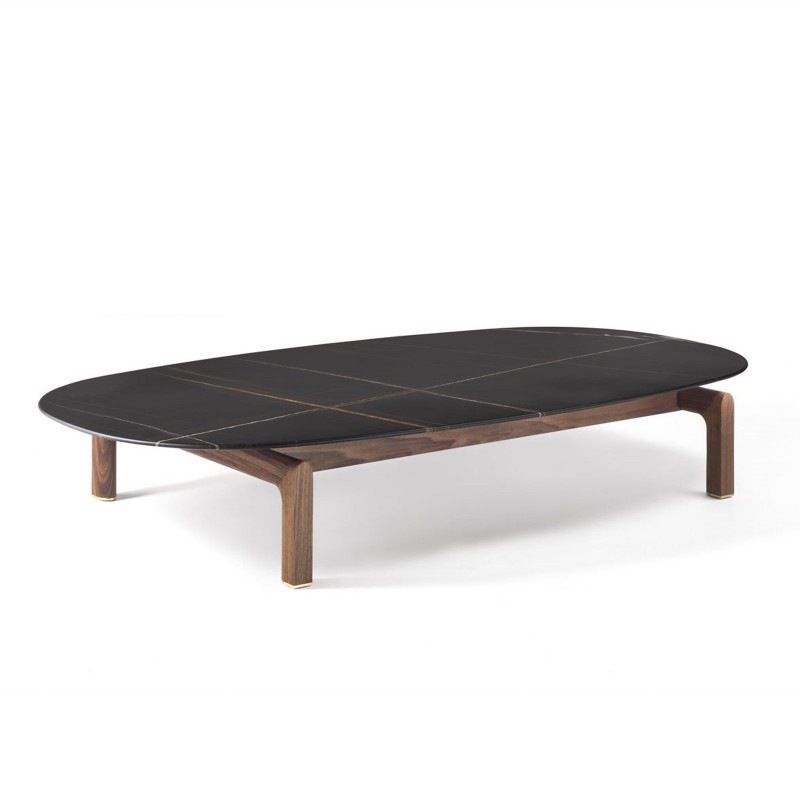Quay est la table basse rectangulaire ou ovale de Porada avec une base en noyer canaletta massif et un plateau en marbre disponible en différentes finitions. Embouts disponibles en laiton brossé ou en chrome noir. Quay est une touche d'élégance contemporaine pour les pièces à vivre ou les espaces lounge.