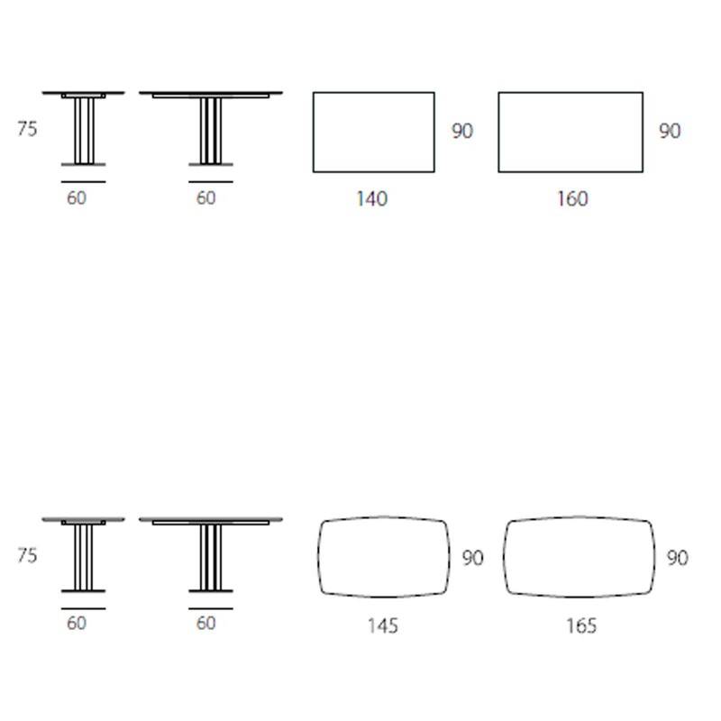 Tower est l'emblème d'une élégance discrète et extrêmement personnalisable: ici, il est proposé en version fixe avec un plateau rectangulaire ou en tonneau, mais il est également disponible en variante extensible.